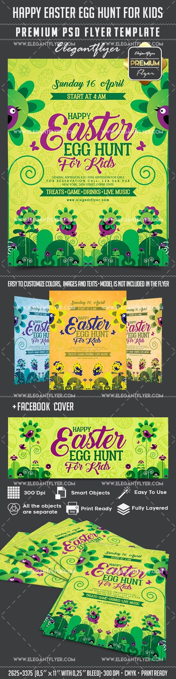 快乐的复活节彩蛋寻找孩子 - 传单PSD模板+ Facebook的封面