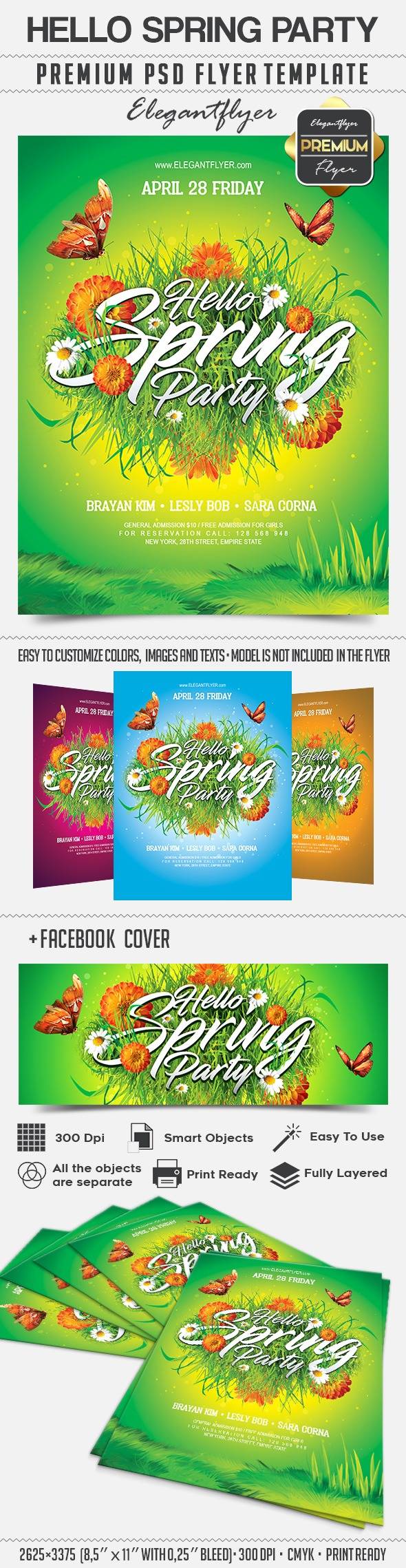 你好春天派对 - 传单PSD模板+ Facebook封面