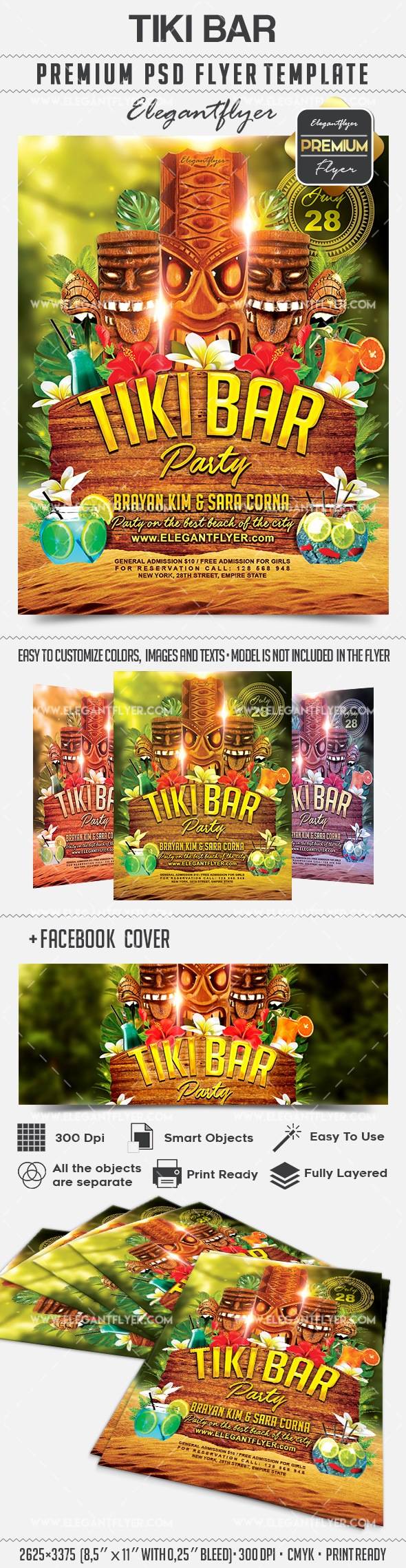 蒂基酒吧 - 传单PSD模板+ Facebook封面