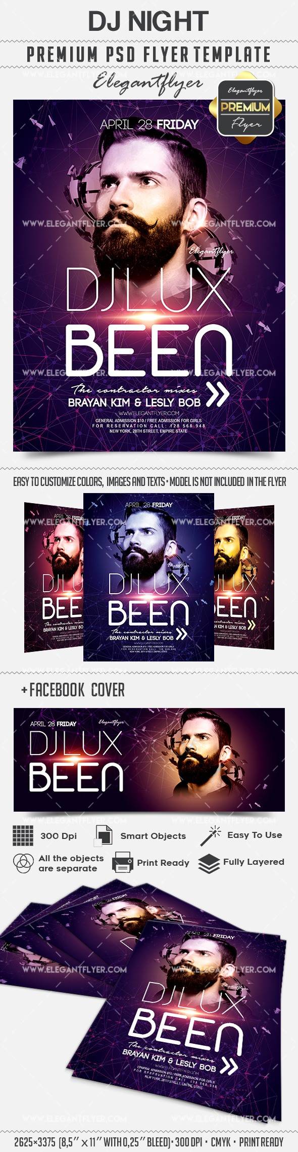 DJ晚上 - 传单PSD模板+ Facebook封面