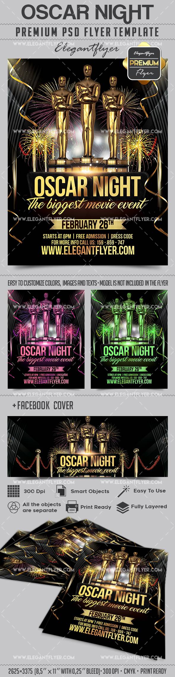 奥斯卡之夜 - 传单PSD模板+ Facebook封面
