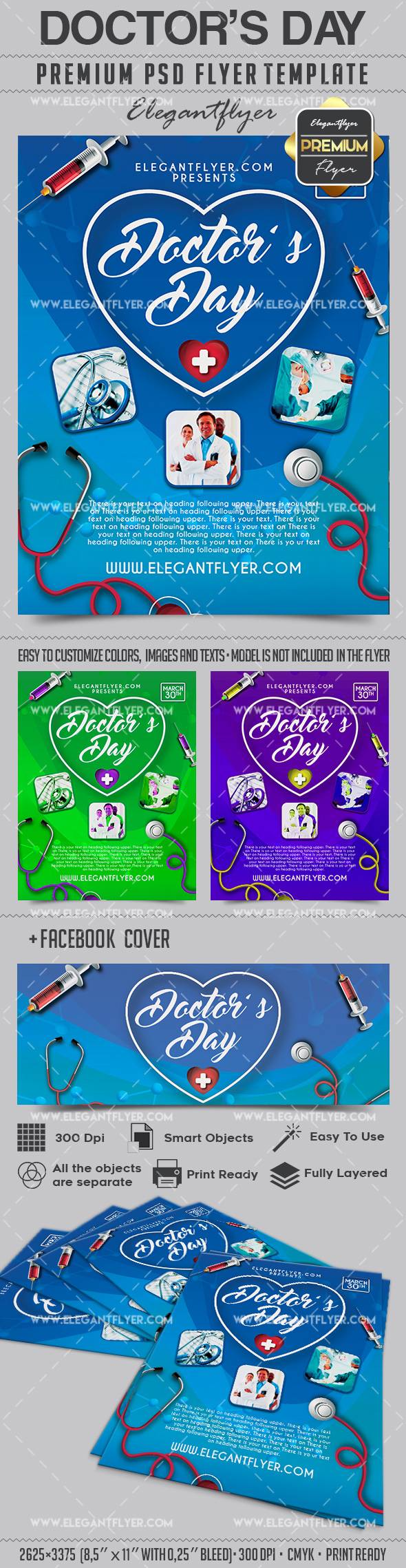 医生的一天 - 传单PSD模板+ Facebook封面