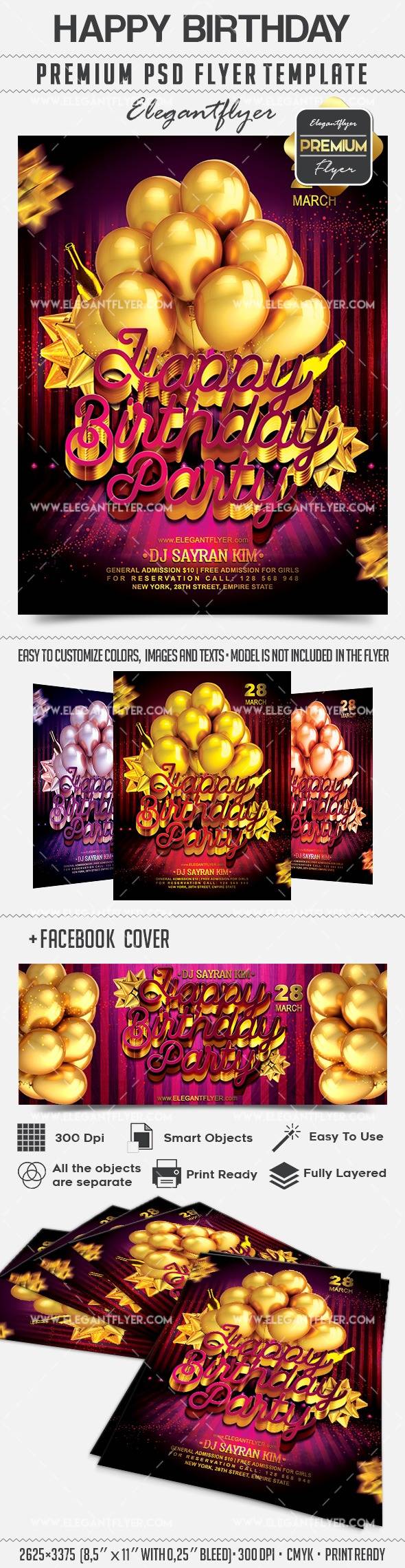 生日快乐 - 传单PSD模板+ Facebook的封面