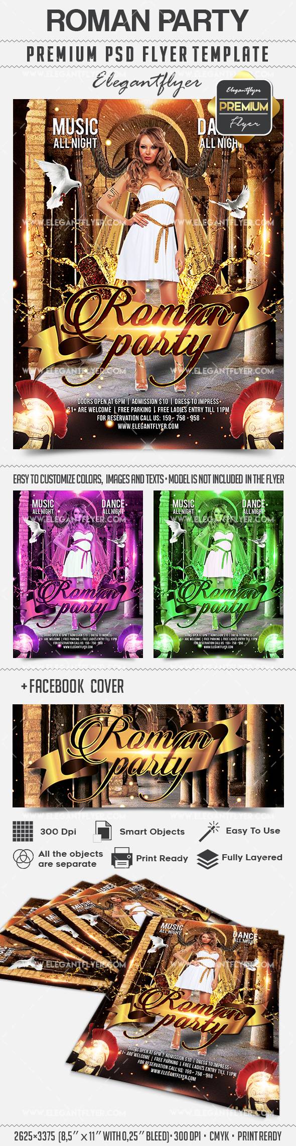 罗马晚会 - 传单PSD模板+ Facebook封面