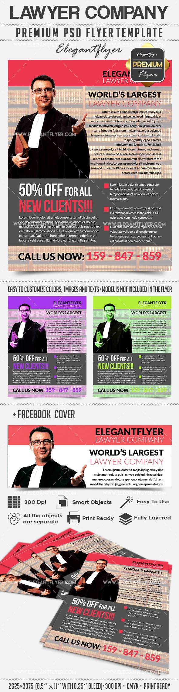 律师公司 - 传单PSD模板+ Facebook封面