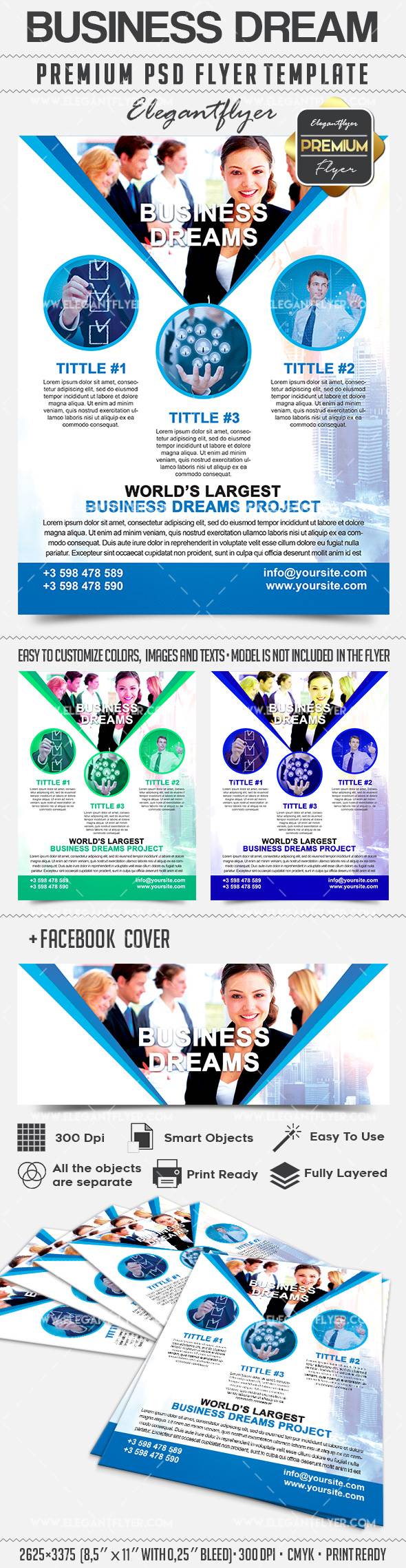商业梦想 - 传单PSD模板+ Facebook封面