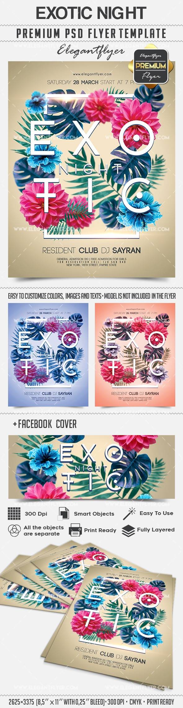 异国风情的夜晚 - 传单PSD模板+ Facebook封面