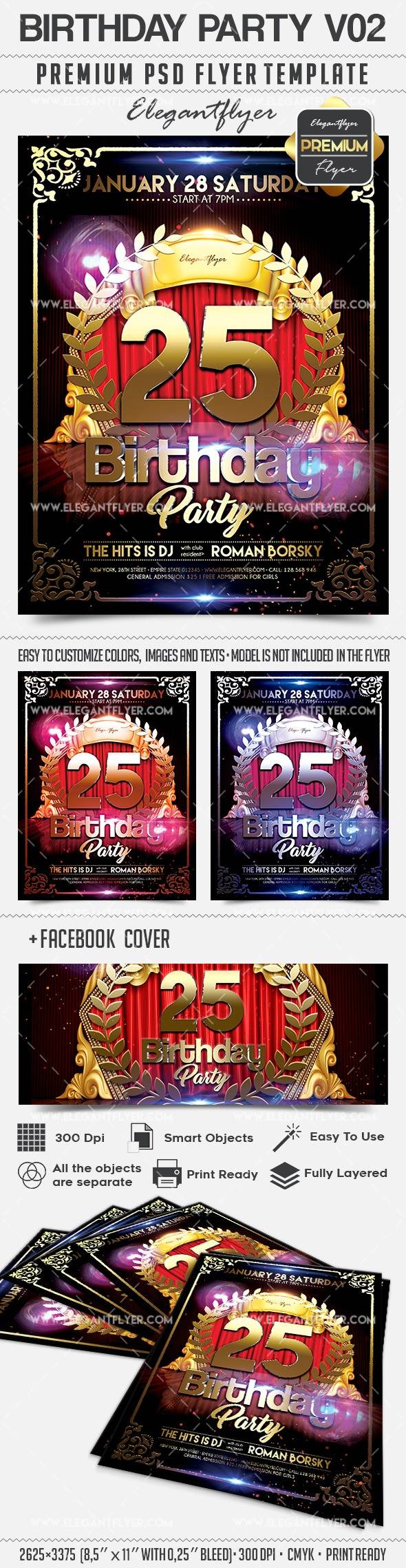 生日聚会V02 - 传单PSD模板+ Facebook的封面