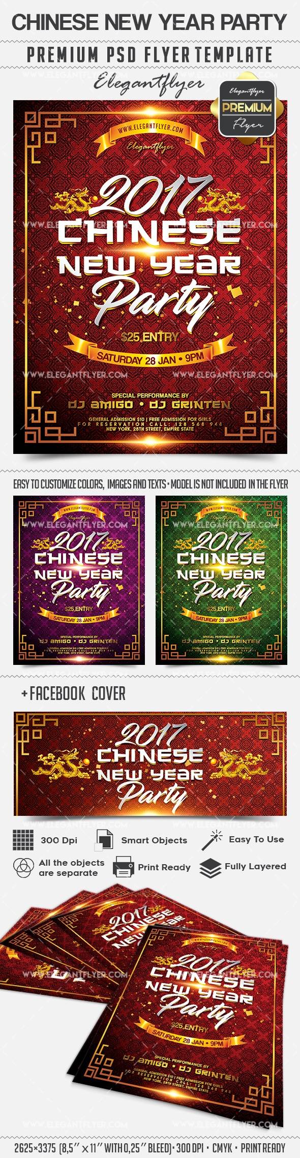 中国新年晚会 - 传单PSD模板+ Facebook封面