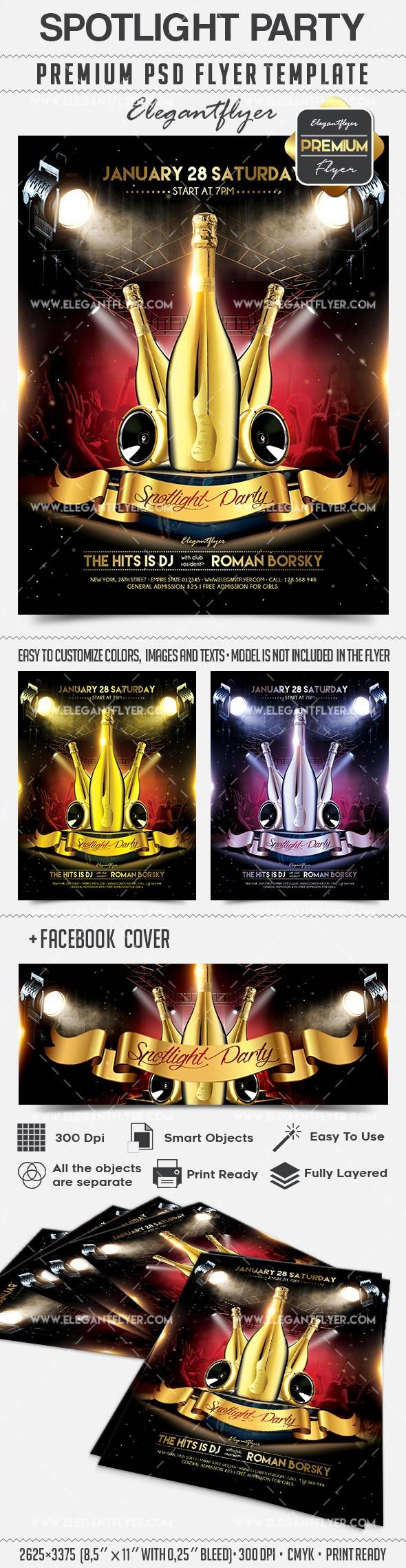 聚光灯聚会 - 传单PSD模板+ Facebook封面