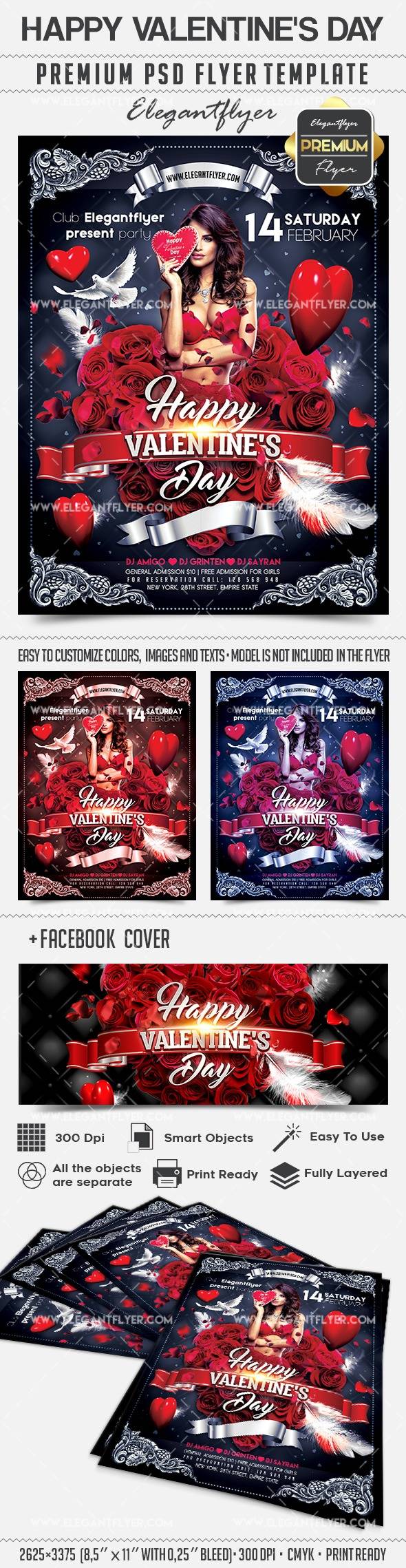 情人节快乐 - 传单PSD模板+ Facebook封面
