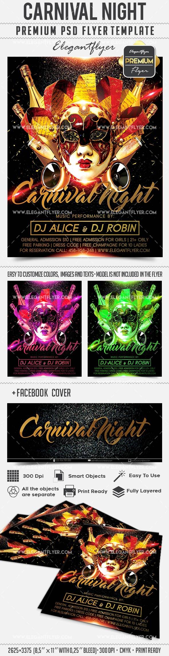 嘉年华之夜 - 传单PSD模板+ Facebook封面
