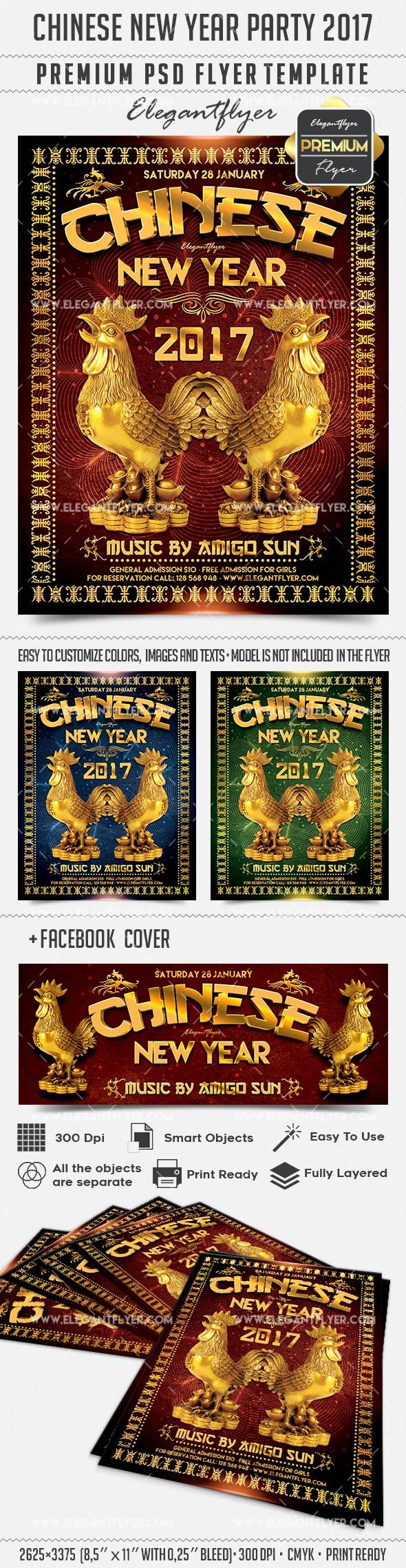农历新年晚会2017年 - 传单PSD模板+ Facebook封面