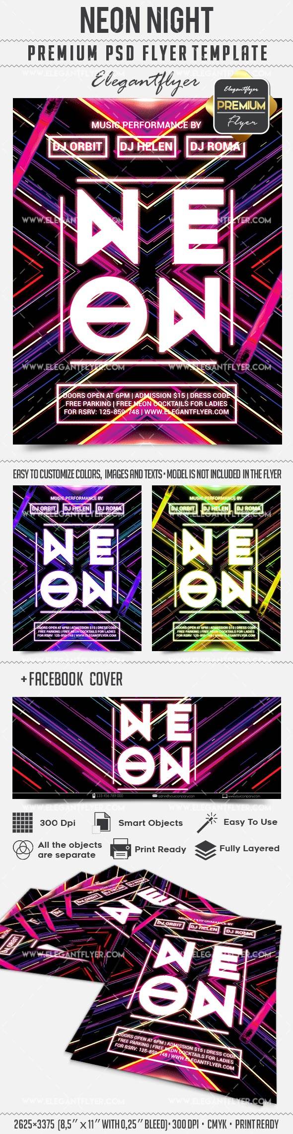 霓虹灯夜 - 传单PSD模板+ Facebook封面