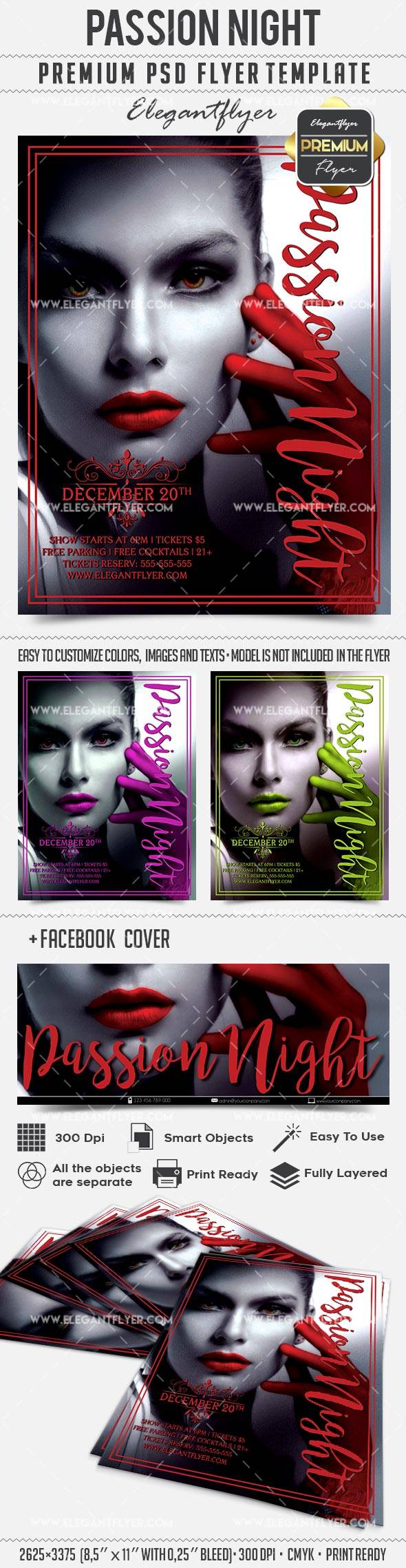 激情之夜 - 传单PSD模板+ Facebook封面