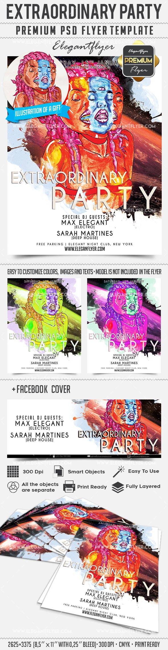 非凡派对 - 传单PSD模板+ Facebook封面