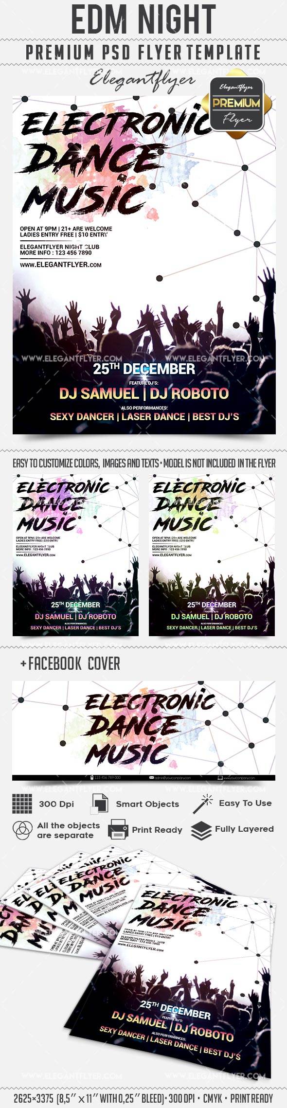 电火花党 - 传单PSD模板+ Facebook封面