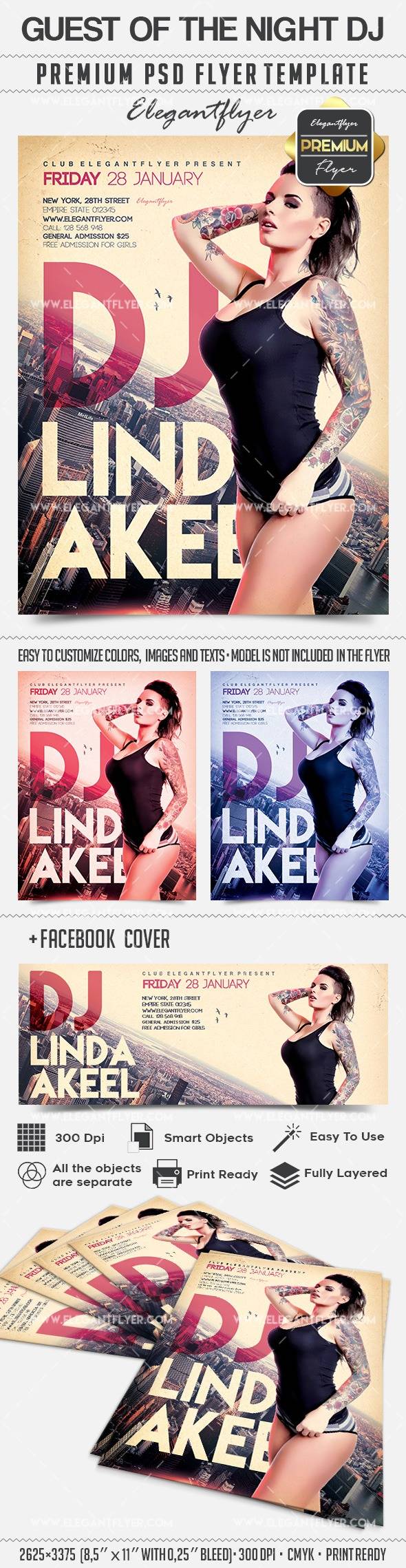晚上DJ的客人 - 传单PSD模板+ Facebook的封面