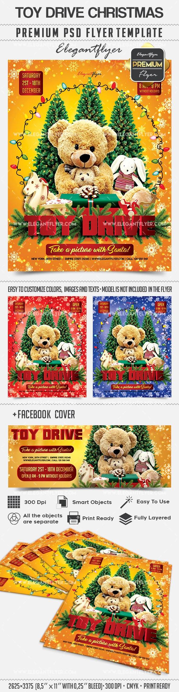 玩具驱动圣诞节 - 传单PSD模板+ Facebook封面