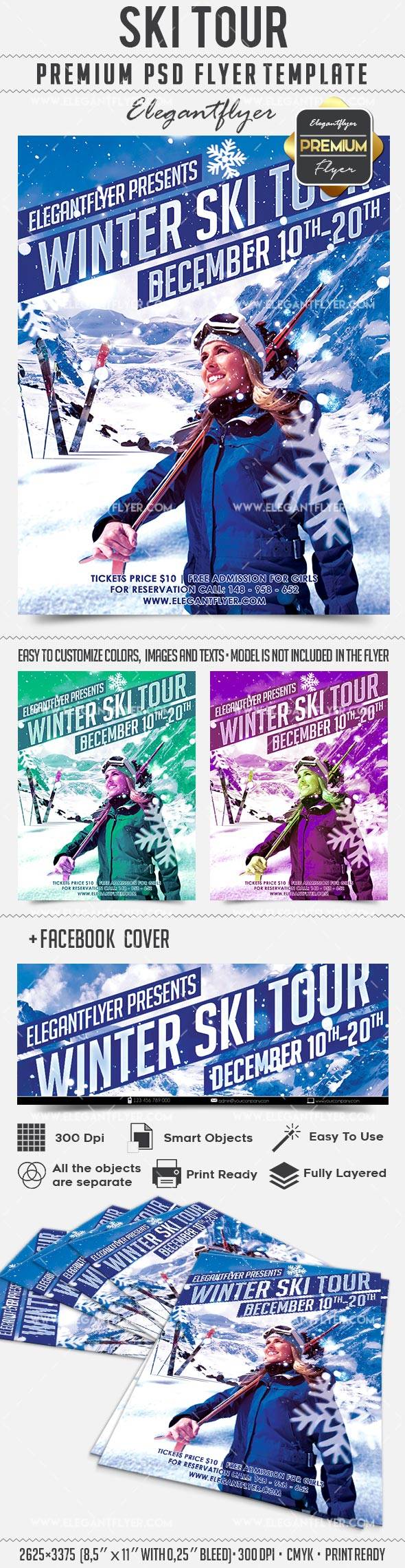 滑雪之旅 - 传单PSD模板+ Facebook封面