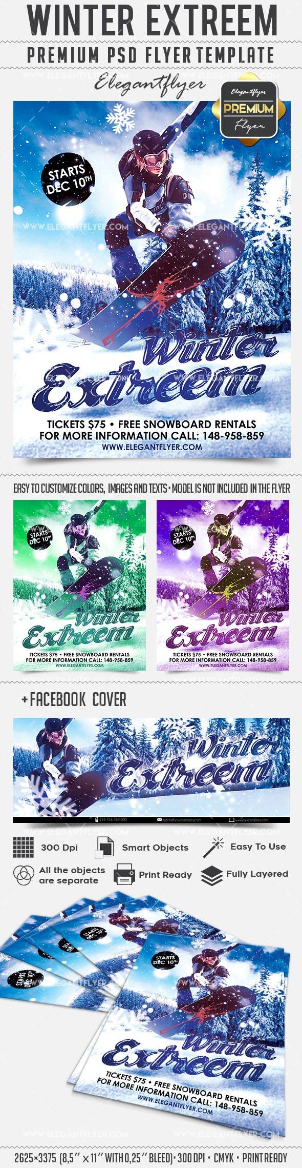 冬季Extreem - 传单PSD模板+ Facebook封面