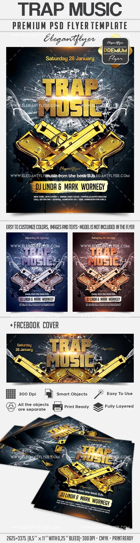 陷阱音乐 - 传单PSD模板+ Facebook封面