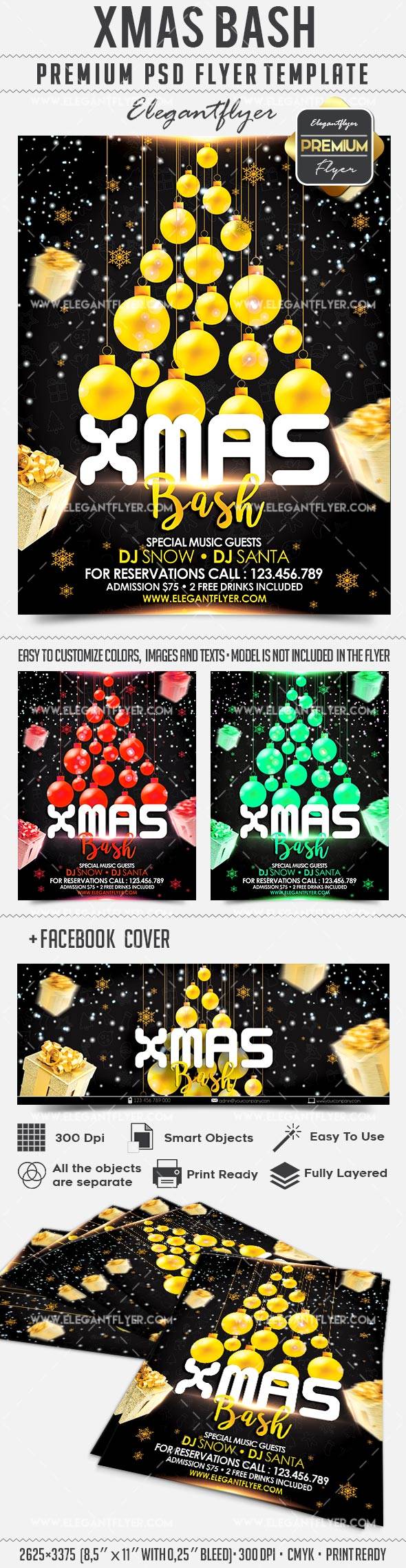 圣诞打击 - 传单PSD模板+ Facebook封面