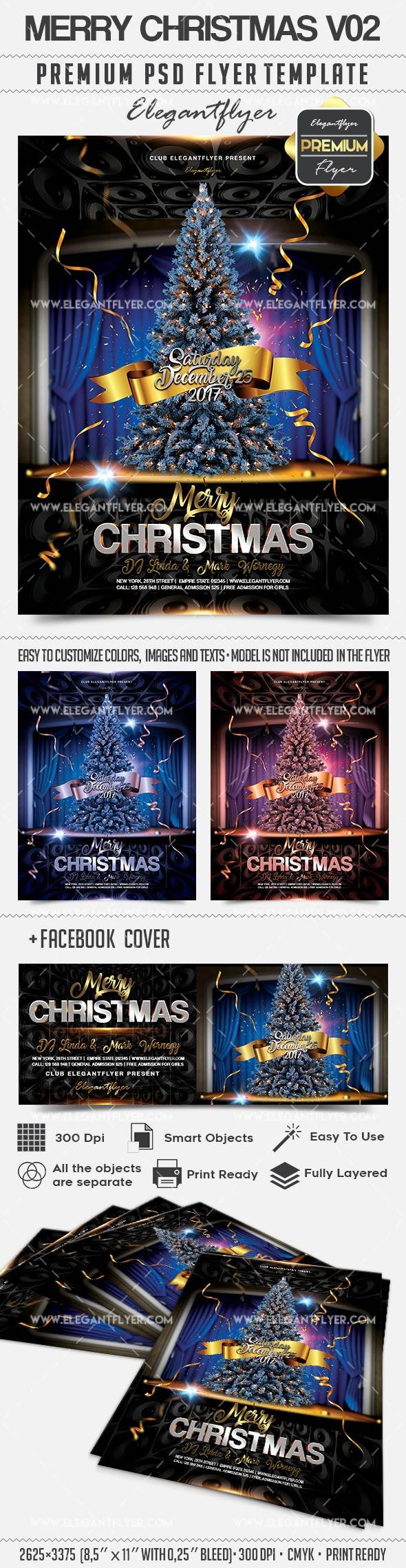 圣诞快乐V02 - 传单PSD模板+ Facebook的封面