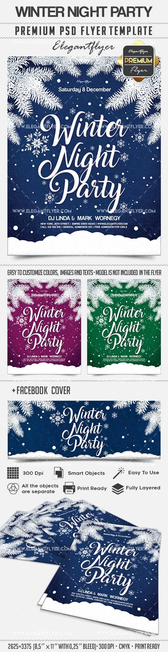 冬季晚会 - 传单PSD模板+ Facebook封面
