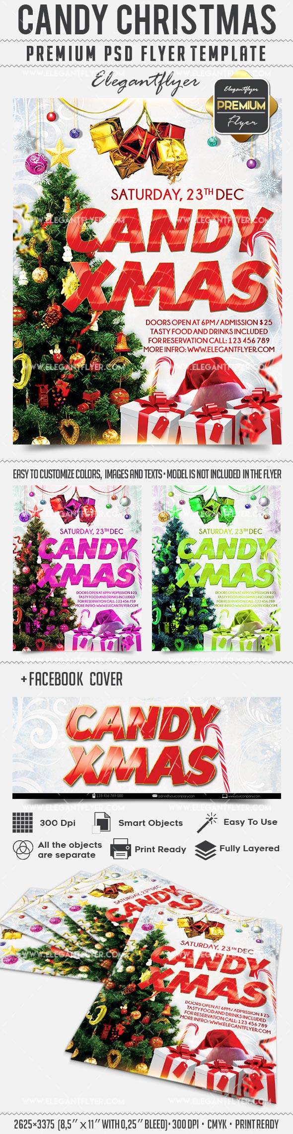 糖果圣诞节 - 传单PSD模板+ Facebook封面