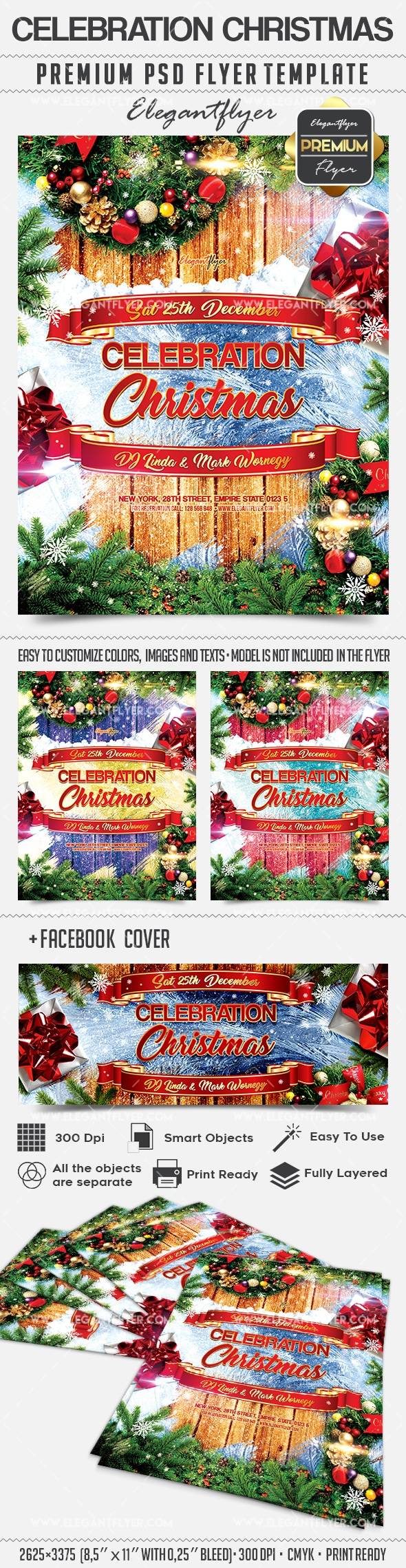 庆祝圣诞节 - 传单PSD模板+ Facebook封面