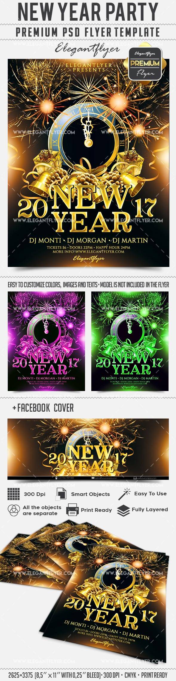 新年晚会 - 传单PSD模板+ Facebook封面
