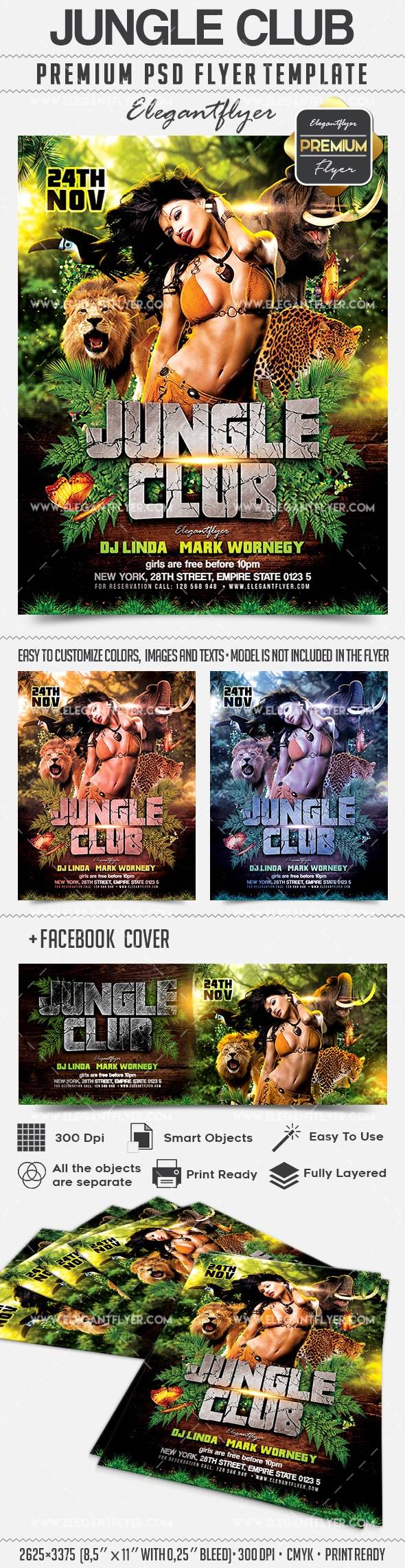 丛林俱乐部 - 传单PSD模板+ Facebook封面