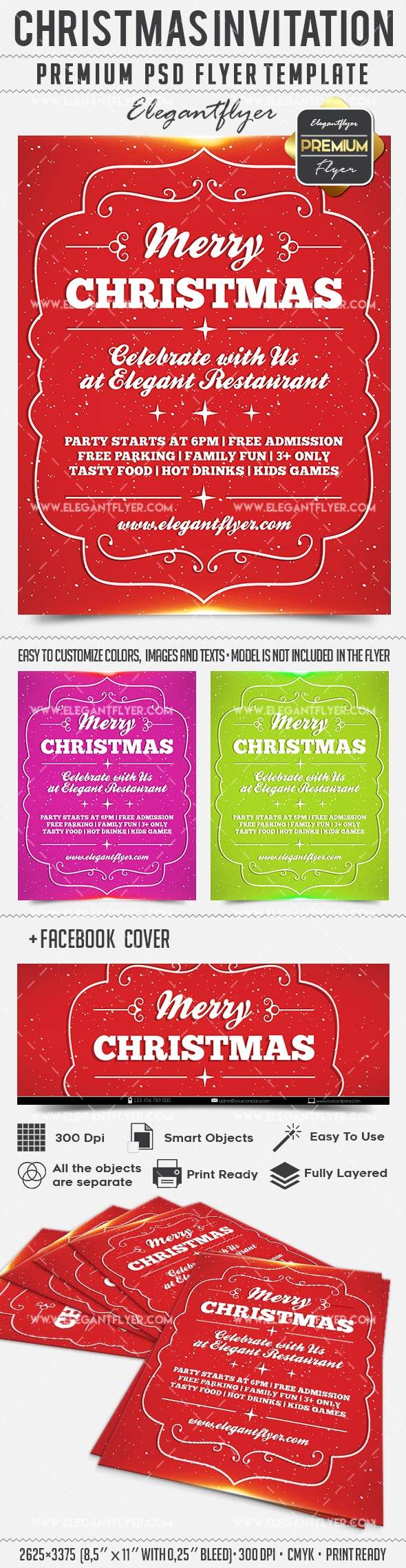 圣诞邀请 - 传单PSD模板+ Facebook封面