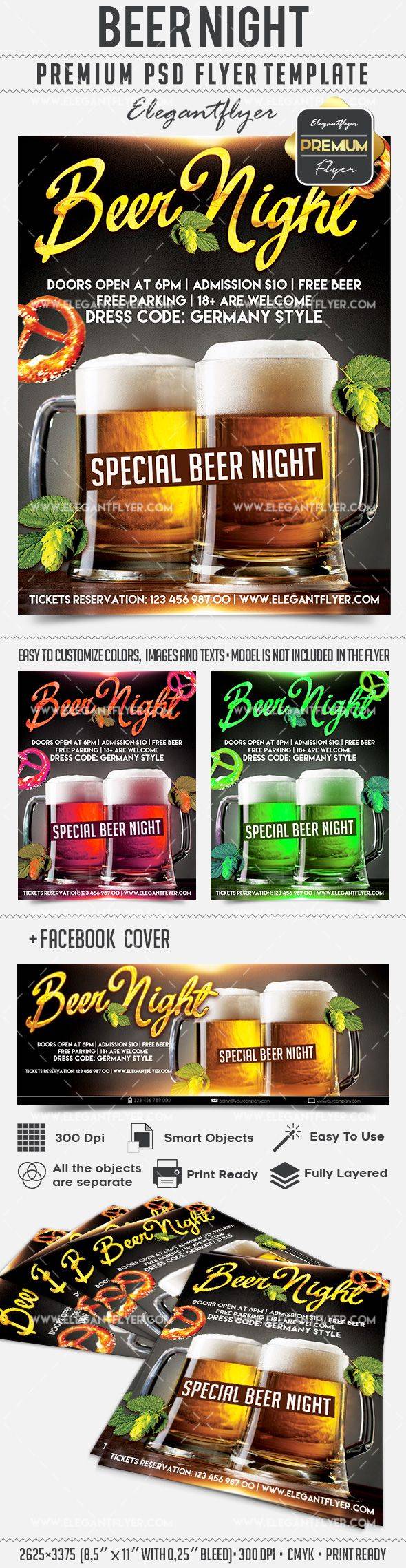 啤酒之夜 - 传单PSD模板+ Facebook封面