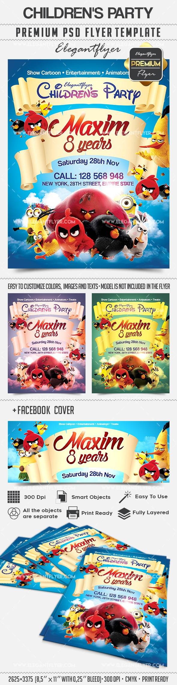 儿童派对 - 传单PSD模板+ Facebook封面