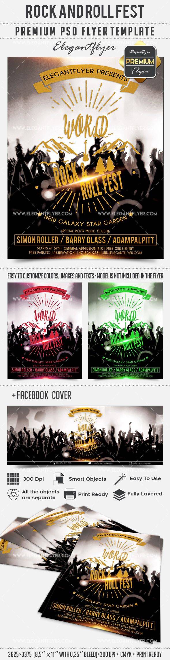 摇滚巨星 - 传单PSD模板+ Facebook封面