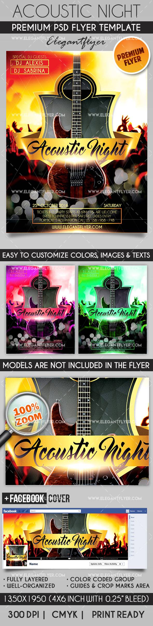 声学之夜 - 传单PSD模板+ Facebook封面
