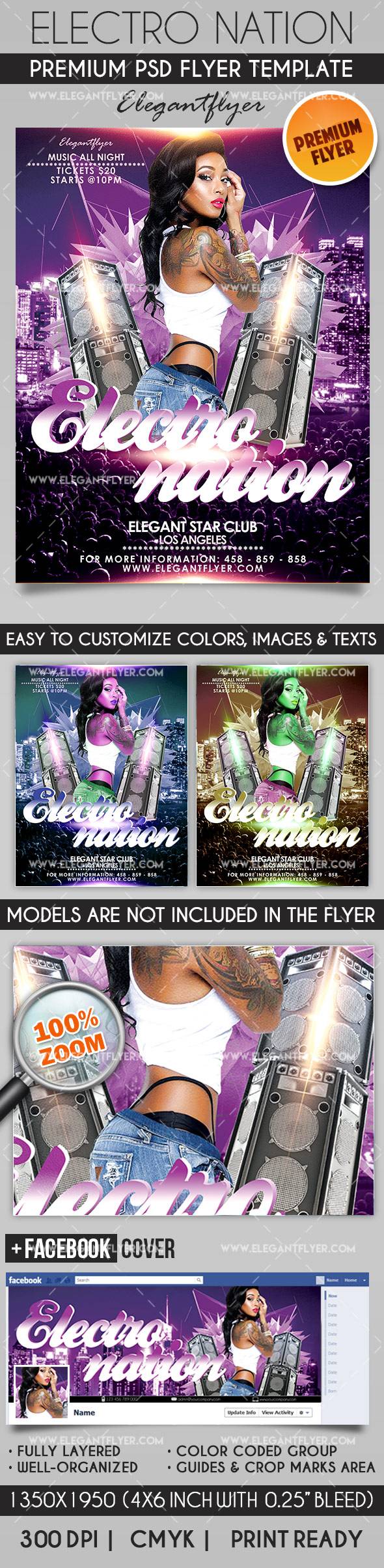 电子国家 - 传单PSD模板+ Facebook封面