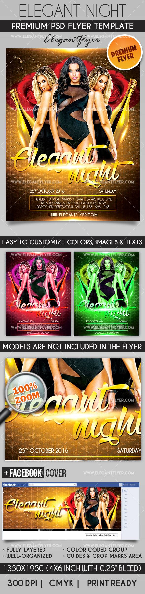 优雅的夜晚 - 传单PSD模板+ Facebook封面