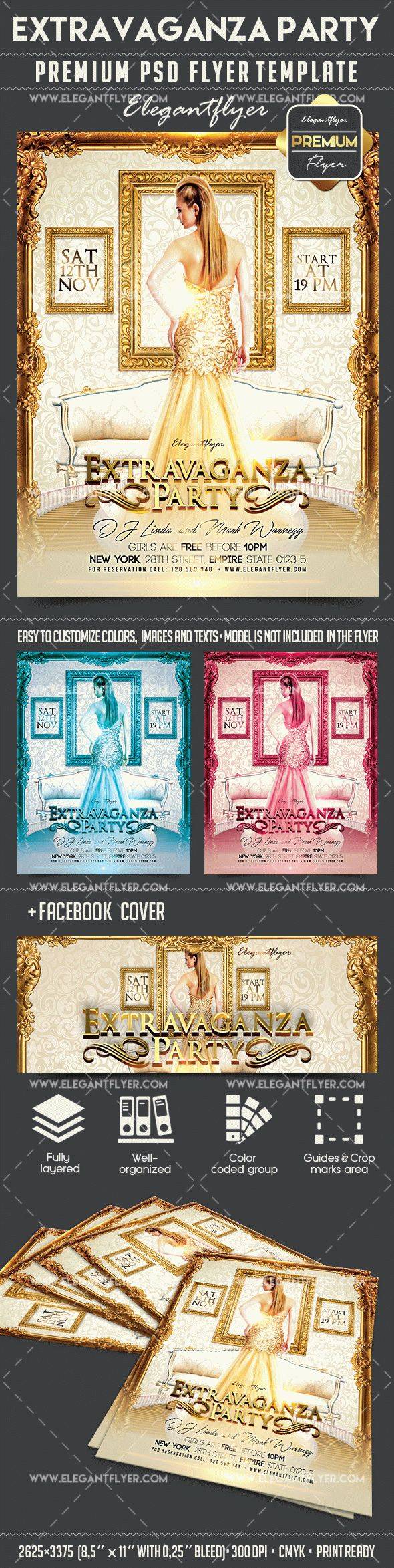盛会派对 - 传单PSD模板+ Facebook的封面