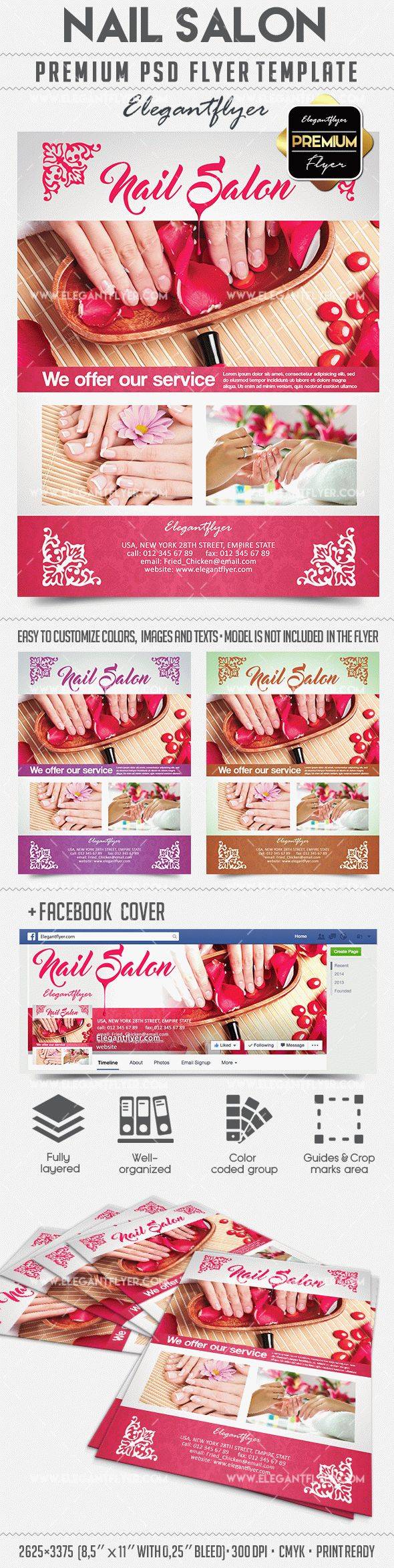 美甲沙龙 - 传单PSD模板+ Facebook封面