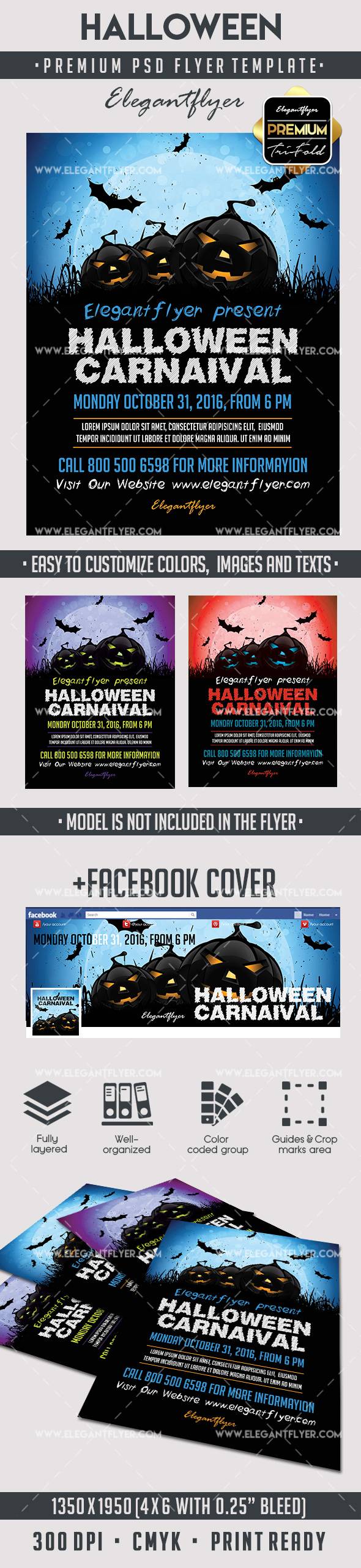 万圣节 - 优质传单PSD模板+ Facebook封面