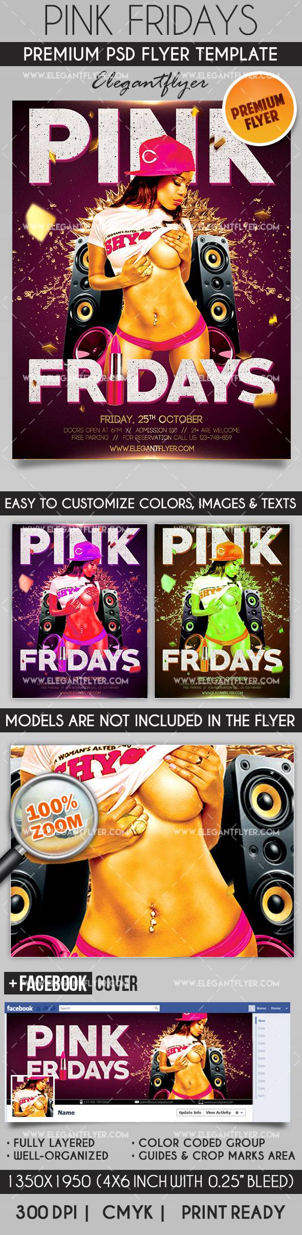 粉色星期五 - 传单PSD模板+ Facebook封面