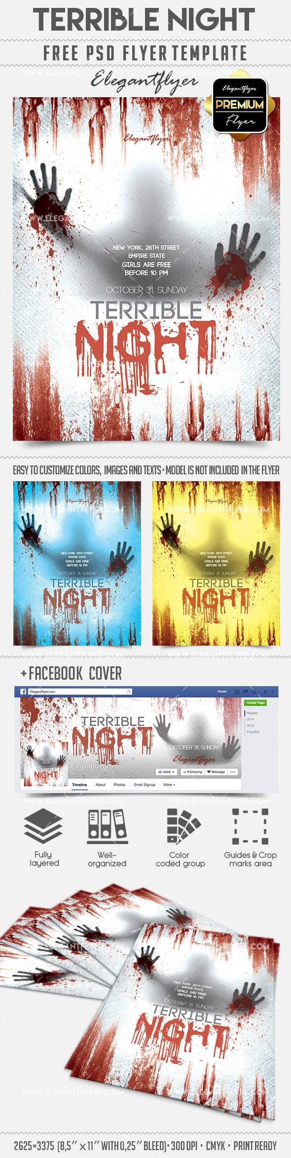 可怕的夜晚 - 传单PSD模板+ Facebook封面