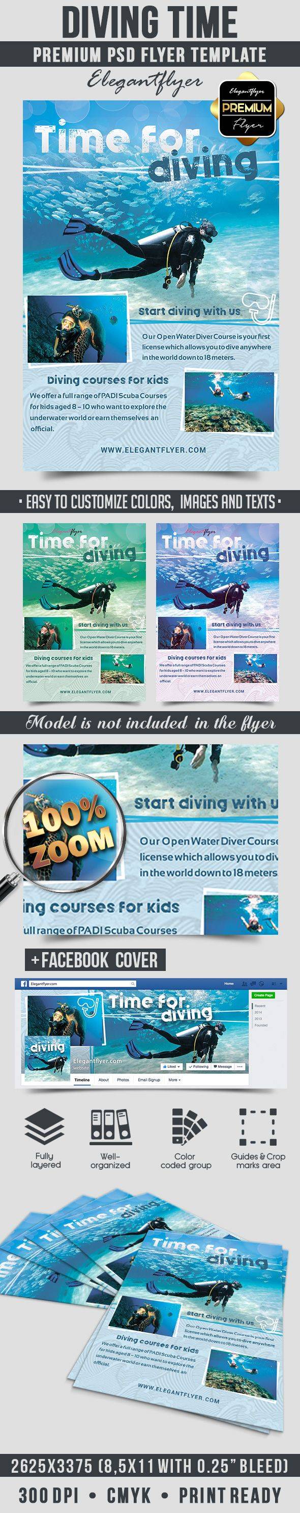 潜水时间 - 优质传单PSD模板+ Facebook封面