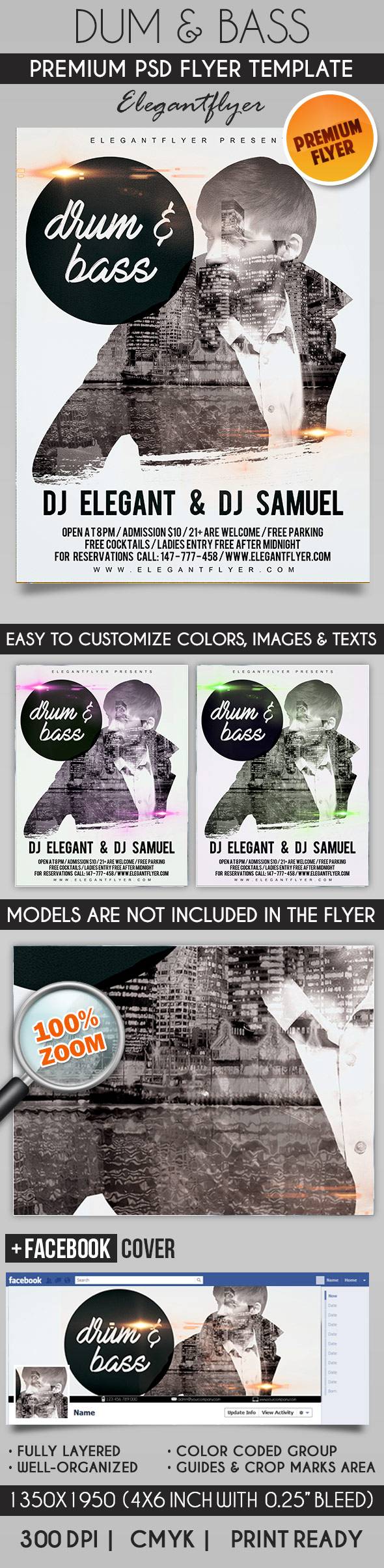 鼓&低音 - 传单PSD模板+ Facebook封面