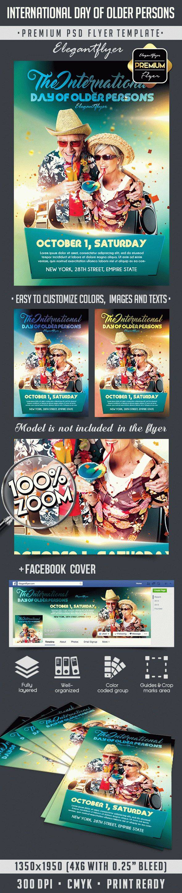 国际老年人日 - 传单PSD模板+ Facebook的封面