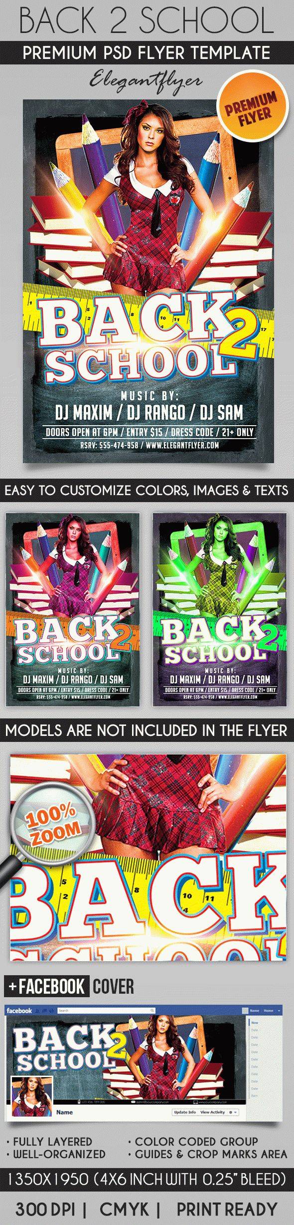 返回2学校 - 传单PSD模板+ Facebook封面