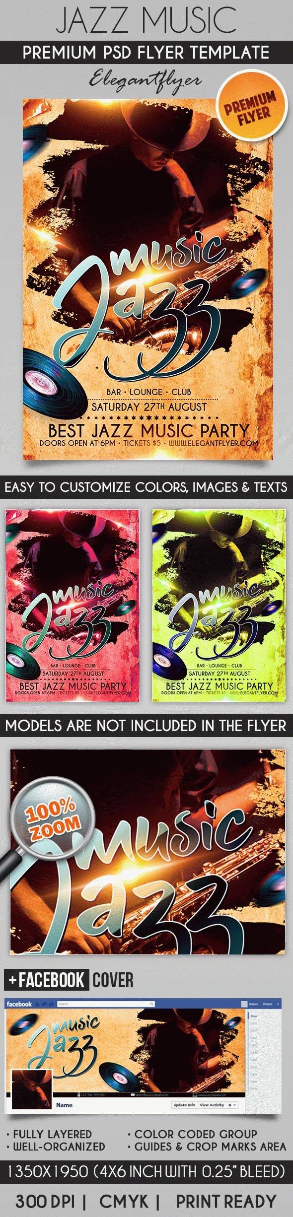 爵士乐 - 传单PSD模板+ Facebook封面